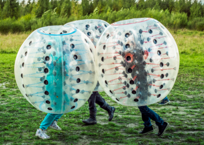 Bumper Ball to atrakcja, która gwarantuje mnóstwo śmiechu i świetnej zabawy. Uczestnicy wchodzą do nadmuchiwanych kul, które amortyzują zderzenia i pozwalają na bezpieczne turlanie się i zderzanie z innymi. Ta dynamiczna gra sprawdza się doskonale na imprezach plenerowych, dostarczając niezapomnianych wrażeń zarówno dzieciom, jak i dorosłym. Nasze bumper balls są bezpieczne i zapewniają pełen komfort zabawy.