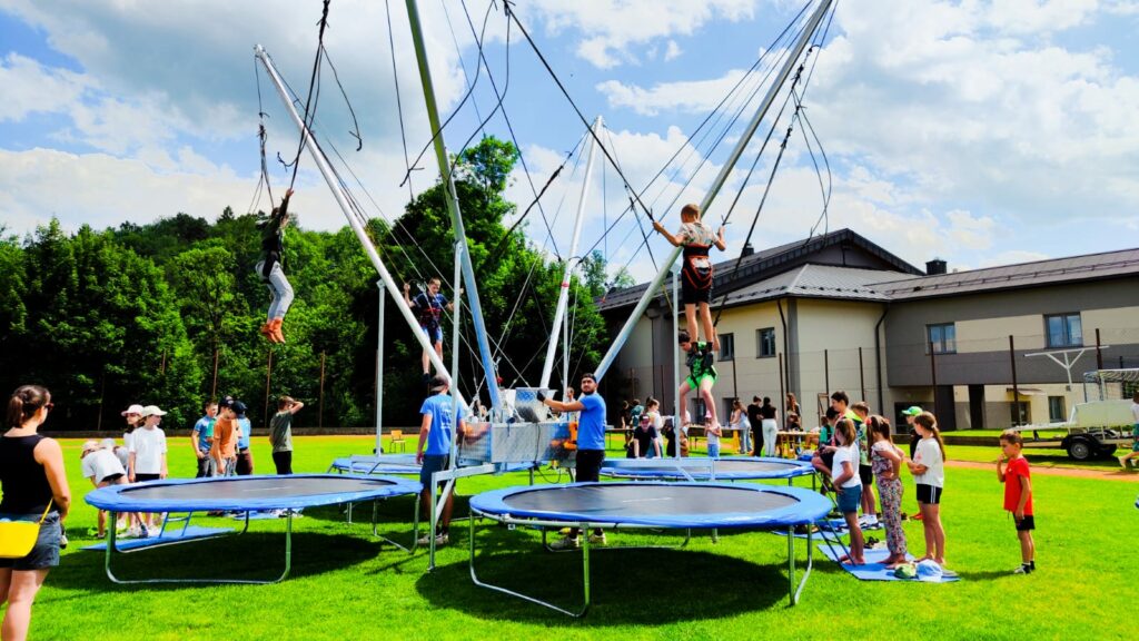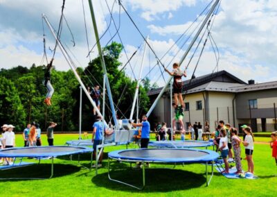 Eurobungee to atrakcja, która dostarcza niesamowitych emocji i niezapomnianych wrażeń. Dzięki specjalnym uprzężom i elastycznym linom, uczestnicy mogą skakać wysoko w powietrze, wykonując różnorodne akrobacje. Nasze eurobungee jest bezpieczne i odpowiednie dla dzieci i dorosłych. Profesjonalna obsługa dba o bezpieczeństwo uczestników, zapewniając im świetną zabawę w pełni kontrolowanych warunkach.